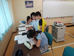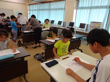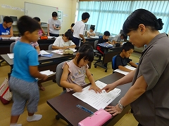↓ サマースクール,3日間の総仕上げです.中学生サポートも来て下さり,大助かりでした.サマースクールは本日で終了ですが夏休みの宿題も計画的に進めていってください.