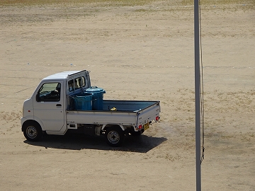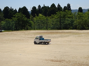 ↓ 運動場に除草剤を撒きました.本日7月31日(火)と明日8月1日(水)は,本校の運動場に入らないようにお願いします.