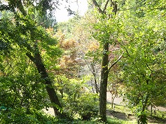 ↑笠野の森の まだ紅葉はそれほど始まっていませんでした。さわやかな緑で森林浴が楽しめました。9月にいっぱいあったキノコはありませんでした。動物が食べたのでしょうか。