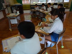 ↓ 給食の後、昨日と本日の2日間にわたり、全校児童で全校児童の自学を見合う会を行いました。自学への意欲の向上と内容の充実をねらっています。自学はどの子も工夫をして一生懸命頑張っていることが全校のみんなにも伝わったことでしょう。学校の勉強の予習、復習を教科書を使ってどんどん進めてください。また、自分でさらに調べたくなったことを追求することも素敵ですね。日記を書いたり、新聞記事を読んだ感想などもためになりますね。