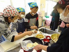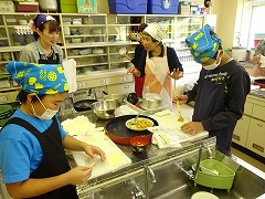 ↓今日は、秋晴れのとてもさわやかな日となりました。台風の影響で延期されていたPTA家庭教育部主催の親子料理教室が笠野公民館の調理室で行われました。津幡町生活改善推進員さんのご指導でとっておきのメニューでの料理教室です。本日のメニューは、豚肉と小松菜の混ぜご飯、焼き春巻き、トマトとレタスのスープにお楽しみデザートは、寒天ときな粉、それに米粉と豆乳をもちいた何とも言えない格別な和風のふんわかとしたデザートです。格別なメニューを友達や親子で調理し、食育を楽しみました。ご指導いただきましたボランティアの先生、お世話いただきましたPTAの皆様、ご参加いただきました保護者の皆様、ありがとうございました。