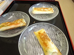 ↑春巻きは油で揚げないのでとてもヘルシーです。野菜もたっぷりで、チーズが入っているので、濃厚な味が楽しめます。家族の楽しい会話も一緒に巻くことができます。スープは彩りよく、キノコも入って季節感が味わえました。混ぜご飯は、小松菜と豚肉にショウガの味が効いて、彩りと栄養のバランスが満点です。デザートに用いた寒天は、あらゆる食物の中で食物繊維NO.1で74.1パーセントも食物繊維が含まれています。今日はきなこと豆乳もミックスして体に優しいデザートが出来上がりました。会話を楽しみながらお料理を作り味わうことは、脳のセロトニン分泌にも役立ちます。私もゆとりある食生活を見直すきっかけとなりました。とてもおいしくいただきました。ごちそうさまでした。