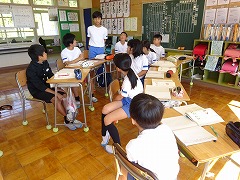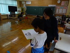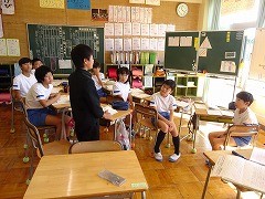 ↑「ごめんなさい」ということは小さな親切かどうかはいろいろな考えがありました。本当に考えたいことは答えは1つではないのです。大切なことは、その理由と根拠です。「ごめんなさい」は正直に謝る心だから、親切と違うかもしれない」。でも、「ごめんなさい」を言うと、「人と人がつながるように思えるから、親切と同じだよ」、という考えや、「ごめんなさい」をいうと幸せな気持ちになれるから親切と似ているのでは?」「校長先生の考えも聞かせてください。」と、授業に誘われ、互いの考えを聞いてまた考え、主体的にどんどん深まる子供たちでした。