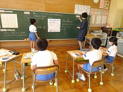 ↓ 笠野塾 月2回、14:40~15:50まで補充や発展学習を行っています。塾長先生は元、笠野小学校の校長先生です。今日は、2年生、3年生、4年生の児童と勉強しました。