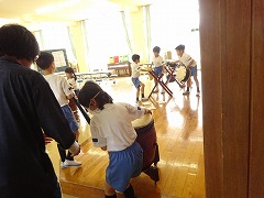 ↑ でんでこ太鼓 1,2年練習 ずいぶん上達して、でんでこのリズムも体で感じることができるようになってきました。