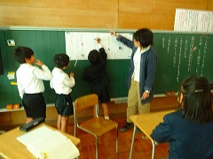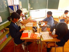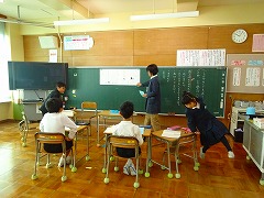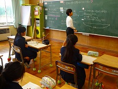 ↓ 授業の後は、授業整理会で1年生が育っていることをたくさんほめていただきました。学習ガイドは1年生は全員体験し、主体的な学びにつながっている、堂々とした発表の仕方、話し方、質問、反応の仕方等、4月からの積み上げが確実な成長となって表れています。小規模校ならではのよさを強みとして授業の中に十分生かし、確実な積み上げを続けていきたいと思います。
