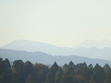 一番右奥のうっすらと見える山が白山です。笠野の通学路から見えました。雪で真っ白く見えました。白山の今年の初冠雪は平年より15日遅く、11月2日だったそうです。笠野から白山が見えて、感激しました!