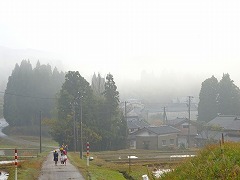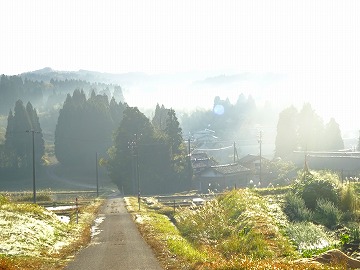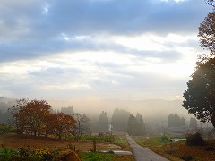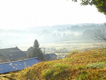 ↑11月の晴れた日の笠野からの景色は、朝霧が立ち、ヨーロッパの山村のような異国情緒あふれる風景のように感じます。(私はヨーロッパには行ったことはありませんが)