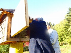 ↓ 巣箱に餌を付けました。柿とお米で餌付けをしました。うまく鳥さんがやってきてくれるでしょうか。楽しみです。