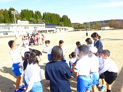 ↑ 今日は「外遊びデー」、長休みは全校で、サッカーを楽しみました。小規模校ですが、縦割りで遊べますので、上級生からいろいろな作戦を教わることができます。↓作戦タイムです。