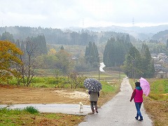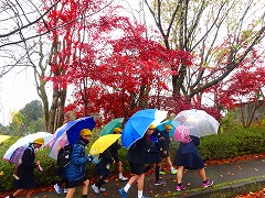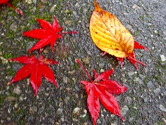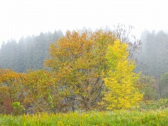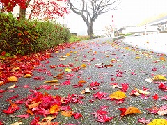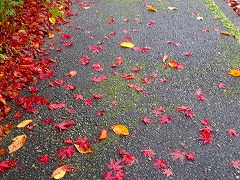 ↓ 真っ赤なもみじが、雨に当たって一層色鮮やかに笠野の野を染めています。