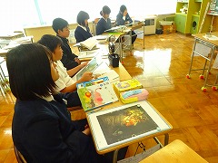 ↓ 6年 国語 自分の選んだ絵を「この絵をわたしはこう見る」と、絵から読み取ったことや感じたことを、視点を明確にして書く学習です。どんな見方を伝えてくれるのか、楽しみです。