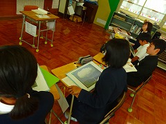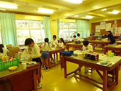 ↓ 3,4年図工 アイディアたっぷりの楽しい小物入れを製作中です。友達の作品を鑑賞することで、ものの見方の幅が広がります。