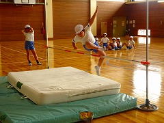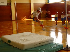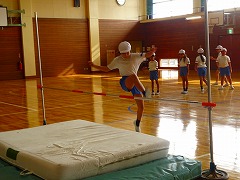 ↓ 3,4年 練習してきた走り高跳びの記録会を行いました。「はさみとび」のフォームもずいぶん上達しました。