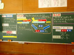 ↓ 3年 算数 こちらは重さの学習です。かごの重さ、その中身の重さを数直線をもとに考えました。