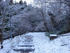 ↑今朝の笠野は0℃でした。粉雪が木の枝に綿帽子のように積もり、繊細な美しさです。