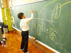 ↑ 1年国語 まとめていう言葉と一つ一つのものの名前の学習で、お店屋さんを開きました。言葉のおもしろさを学習しています。