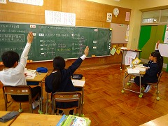 ↓ 掃除後の15分 集中タイム 1年生は活用問題に取り組み、2年生は間違いは宝物、しっかり直しタイム、5年生は活用問題の解説と直しタイム、6年生は自主学習で時間を有効に使っています。