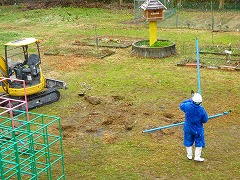 ↑中庭の上り棒は、昨年夏過ぎから老朽化のため使用禁止となっていました。いよいよ撤去となりました。上り棒さん、子供たちとたくさん遊んでくれてありがとうございました。