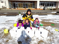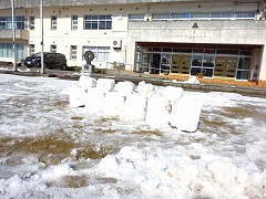 ↑ 校庭にかわいい雪だるまや素敵な雪のお城ができました!