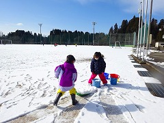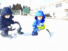 やっと雪遊びができました!笠野小の運動場がにぎわいました。