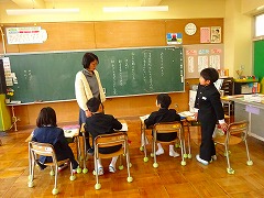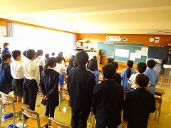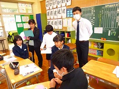 ↑ 歌の先生に卒業式の歌のご指導をいただきました。歌詞に気持ちを載せて歌うこと、顎を引いて歌うこと、そして、発音の仕方を教えていただきました。ご指導いただくと、みるみる歌声が変わってきました。そして、心が素直だから、歌声もとても素晴らしいとほめていただきました。卒業式に向けて、さらに練習を続けていきたいと思います。本日はありがとうございました。