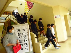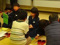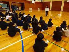 ↑ 避難所では、子供にできるボランティアはいろいろあることを教えていただきました。ボランティアとは、思いやりを行動に表すこと、子供が避難所の方に声をかけることで、徐々に心を開いてくださることが多いそうです。子供たちもみるみる表情が柔らかくなり、自分から話しかけることができるようになりました。相手に元気になってほしいという思いを込めて、話すと表情も、目線も温かなものになってきました。貴重な体験をさせていただきまして、ボランティアの先生である北村さん、社会福祉協議会の皆様、そして、地域の皆様、ありがとうございました。