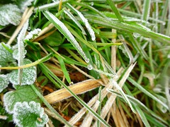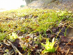 今朝も霜が降りていましたが、なんと葉の先には霜が溶けだした水滴がついているのですよ。これまでの霜とは違い、春先の霜なんだ!と驚きました。大発見です。