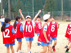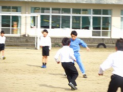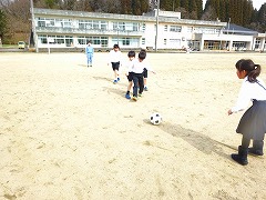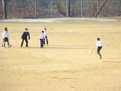 ↑ 1年生から6年生まで遊べる人はサッカーをして楽しんでいます。
