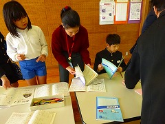↑ 給食後は、自学のノート見合いタイムです。今回は、2年、4年、6年のノートを見て学び合いました。間違えやすい漢字にコメントを入れたり、図を描いて問題を解いたり、日記もたくさんありました。それぞれに工夫しながら、自分の弱点克服やさらにパワーアップしたい学習にがんばっているのだなあと感心しながら見せてもらいました。