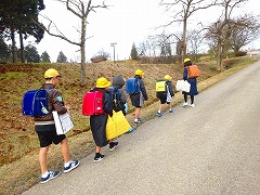↑ 6年生との登校もあと14日になってしまいました。今朝の笠野は穏やかで、低いところに朝もやがかかっています。幻想的な光景です。