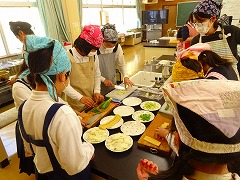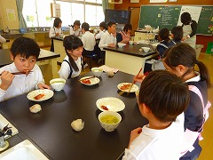↑ 5年生と6年生が家庭科で調理実習をしました。家庭科室(理科室)いっぱいに、レストランのようなにおいが漂っていました。煮干しでしっかりだしを取り、味噌汁はとてもおいしそうに仕上がりました。6年生が作ったベーコン巻きは彩りよく、ご飯もふっくら炊きあがっていました。これなら、いつでも家で食事作りを任すことができそうです。ぜひ、今日の成果を各家庭でも発揮してくださいね。