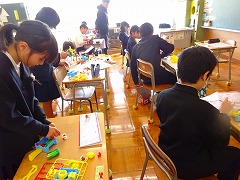 ↑ 5年 理科 電磁石を用いたおもちゃ作りです。説明書を見ながら、「魚釣り」や「ボールあてゲーム」を作っていました。回路も上手に組み立てることができるようになってきました。