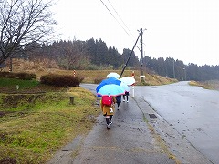 ↑ 雨ですが、みずみずしい野の花も咲いています。傘を差しながら、話にも花を咲かせ元気に登校です。