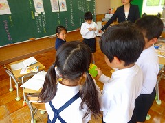 ↓ 1年 尿検査一式をお渡ししました。明日の朝一番の尿を取って学校へもってきてください。国語 いろいろな声の出し方で、「あいうえお」のお話を音読しました。口をはっきり開けてくださいね。