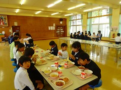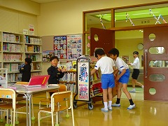 ↑ 給食の後は、連休中に読む本を借りました。特別貸し出して、一人4冊借りることができます。10連休もありますので、ゆっくり読書を楽しんでください。
