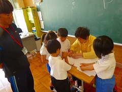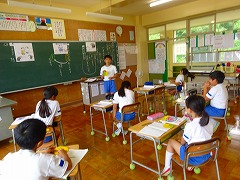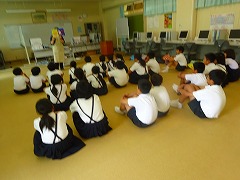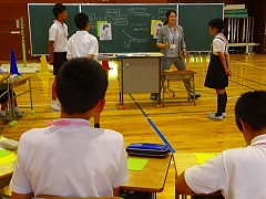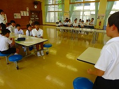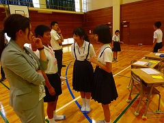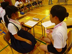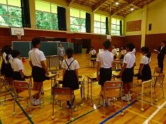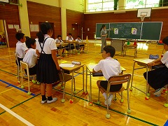 ↑ 10月31日には、たくさんのお客様が来られますので、体育館で師範授業をしていただく予定です。子供たちも慣れるために、本日は体育館で授業をしていただきました。友達同士のすれ違いってどうして起こるのか、そんなときどんな状況になっていくのか、どう解決できるのか、役割演技をしながら、子供たちが話し合って考えていきました。初めての出会いの授業でしたが、子供たちは、一生懸命との道徳の授業に挑んでいました。