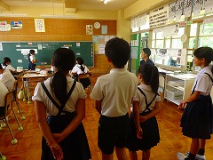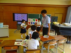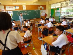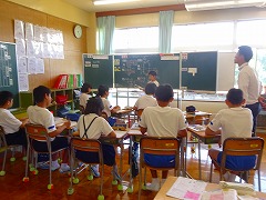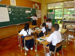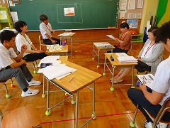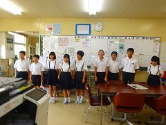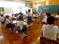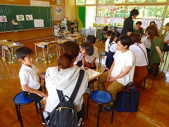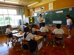 ↑ 10月31日、笠野小学校で行われる「人と地域を生かした道徳教育講座」で師範授業をしていただく東京学芸大学の附属小学校の道徳の先生に本日お越しいただきました。3限目には、道徳の授業を参観していただき、4限目は学活で、5,6年生の顔合わせのおしゃべりタイムを行いました。「パンとごはんでは、どちらが好きですか」、「どこでもドアがあったら、過去へ行きたいですか、未来に行きたいですか」「道徳の授業はどんな時間だと思いますか」など、先生とみんなで話しました。話し合うことで、先生とすぐに仲良くなり、楽しい一時を過ごすことができました。