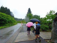 ↑ プールバックを持っての登校ですが、水温23度で、気温もあまり上がらず、今日はプールには入りませんでした。
