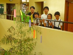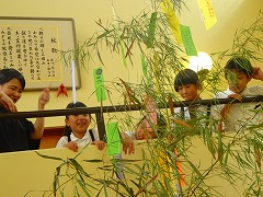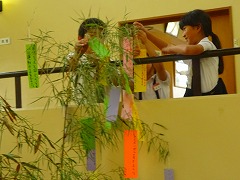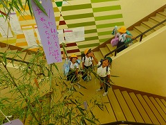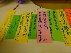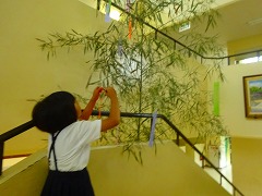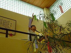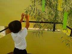 ↑ 短冊に願い事を書いて飾りました。笹のよい香りがします。
