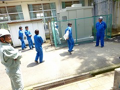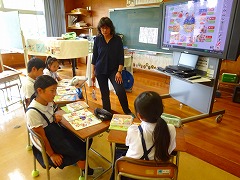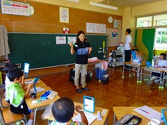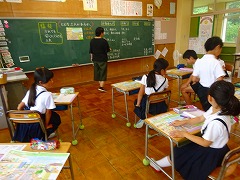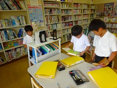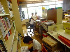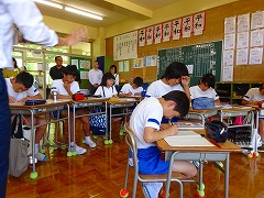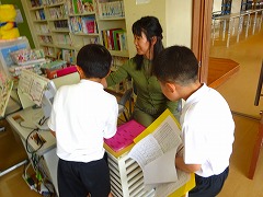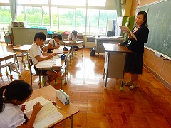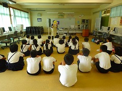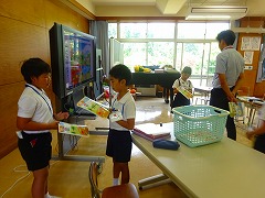 ↑ 昼休み、子供達は学校司書の読み聞かせを聞いたり、図書館で読書をしたりして過ごします。また、昼休みには、エアコン取付作業の最終検査も行われました。7月からは、エアコンが作動します。今年の夏は、例年に増して勉強に集中できそうです。