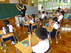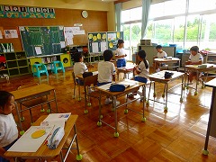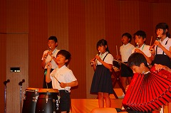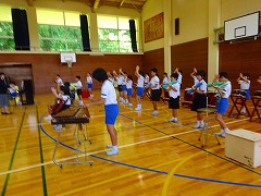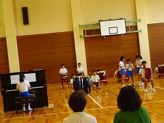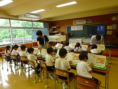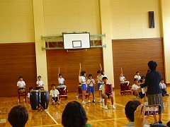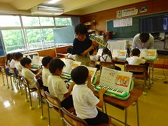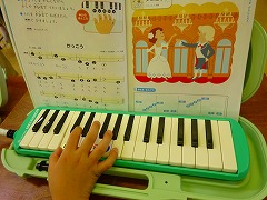 ↓ 1,2年生合同で鍵盤ハーモニカの練習です。指使い、タンギングを確認して、楽しい演奏ができました。