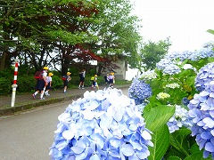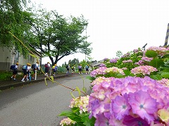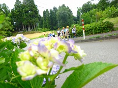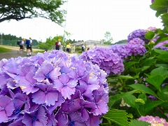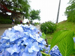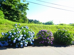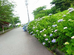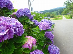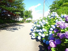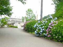 ↑ あじさいロード 梅雨の蒸し暑さを癒してくれます。
