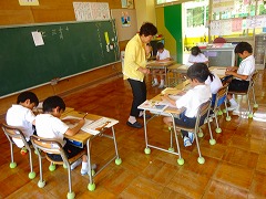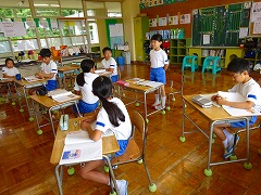 ↑ 1年生 ひらがなもどんどん上達しています。今日は書写の先生に硬筆を教えていただきました。姿勢、鉛筆の持ち方、しっかりとした筆圧、そして、美しい運筆の方法を学びました。1年生は、初めてひらがなを学ぶので、美しい文字を書くように心がけてほしいと思っています。