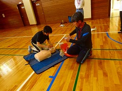 ↑ アフターランチタイム研修 今日は、津幡町消防署の講師をお招きし、救命救急の職員研修を実施しました。とっさの緊急時に慌てず正しく対応できるように、毎年1回は、研修会を行い、繰り返し繰り返し学んでいます。胸骨圧迫による心肺蘇生法とAEDを使用しての救命救急の仕方を学び直しました。