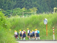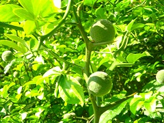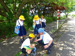 ↑ 通学路にある実のなる木、これはカラタチの木だそうです。みずみずしさを感じます。秋には黄色く実ることでしょう。昨日、4年生がミカンの木にアゲハの幼虫がいないか探していました。自然いっぱいの笠野の通学路です。