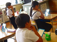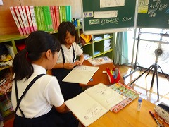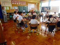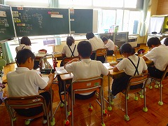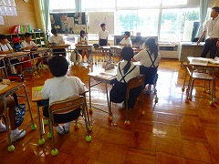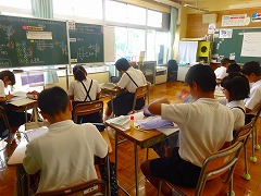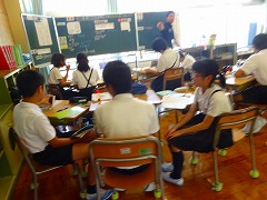 ↑ 5.6年生の授業を4年生が参観しました。(1限目の途中5分間程ですが)友達の意見を聞いて、どのように自分の考えをつなげていけばよいのか見て学びました。集中力、授業の中でだれに対しても同じように思いやる優しさ、自分自身と対話する真剣さ…上級生からの学びは大きいです。