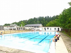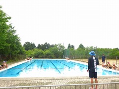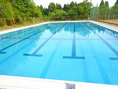 ↑ みんなできれいにしたおかげで、笠野のプールに夏到来です!楽しいプール学習をしていきましょう。