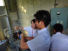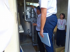 ↑ プールのスタンバイOKです。みんなが一生懸命プール掃除をしたおかげで、きれいなプールになりました。これから、毎日、1日に数回プールの水質検査を職員で行っていきます。プールの水の衛生を管理する機械説明会を業後行いました。