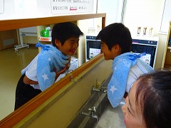 ↑ 今日は歯科衛生士さんをお招きして、むし歯予防の歯みがき教室を1.2年と3.4年生に開催しました。笠野小学校は昨年度は、むし歯の治療率100%でした。しかし、今年の6月に実施した歯科検診では、また、むし歯になってしまった児童が昨年同様にいるのです。歯科衛生士さんのお話によりますと、生活習慣と磨き残しが大きな原因だそうです。今日は、来年の歯科検診では、「むし歯ゼロ」と診断されるように、丁寧な磨き方を学びました。